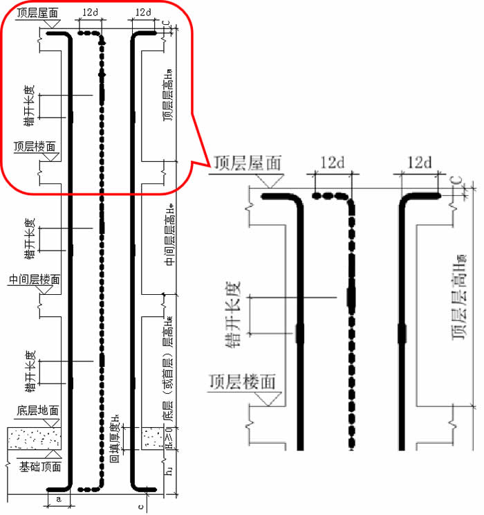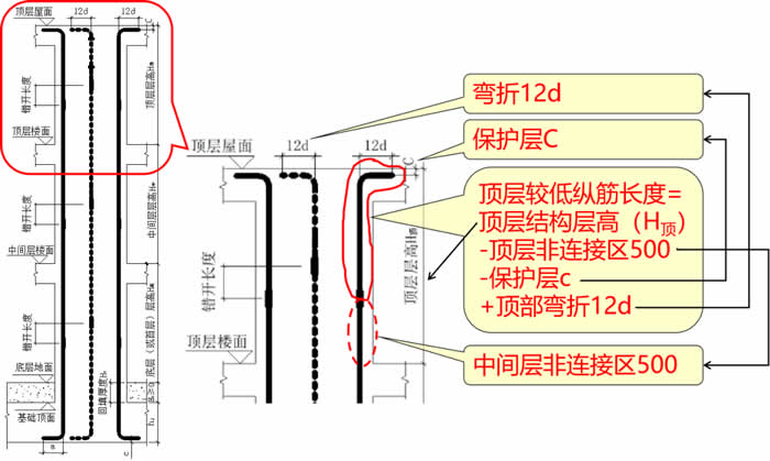 顶层较低纵筋长度,就是在结构层高的基础上加加减减,具体计算过程如下图所示。